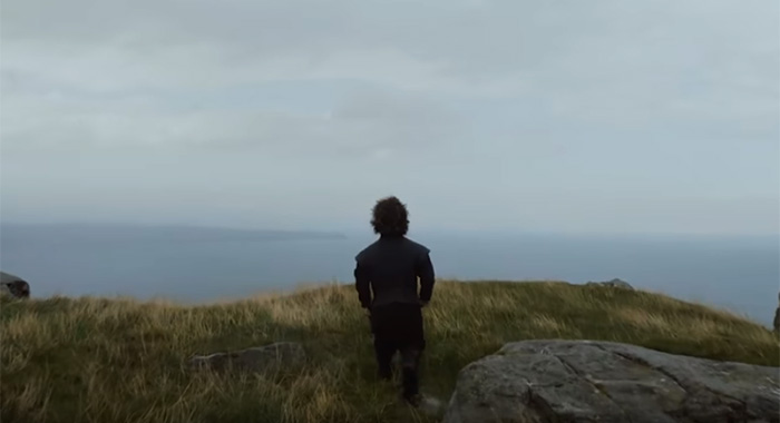 15. Estranged Lannister brother Tyrion approaches a cliff’s edge. Like to think he’s at Dragonstone looking out toward King’s Landing and thinking, Be there soon, sis.