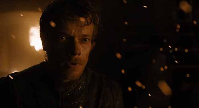 30. Hey, Theon. What’s up? Is this the face of a man who’s just met a dragon close up and personal like? Maybe. And Littlefinger is still talking! “…last best…”