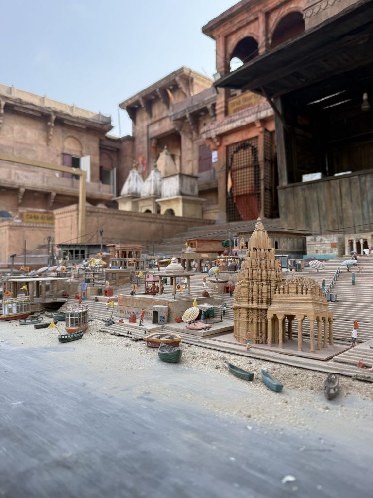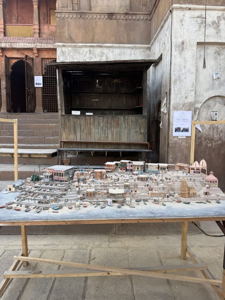 The level of craftsmanship was striking. Buildings were constructed using detailed reference images of the real Varanasi, complete with precise measurements and decoration instructions to ensure authenticity. One of the most impressive structures was the Ratneshwar Mahadev Temple, recreated with its distinctive tilt (Picture 7)… a detail carried over exactly from the real-world landmark, down to its depth and angle. Plans are even in place to surround it with water, further enhancing the realism.