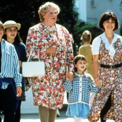 Robin Williams dons women’s clothing (and a suspect accent) to stay close to his kids after a separation from his wife.