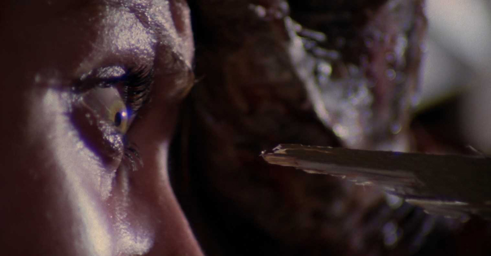 Italian copyright laws allow movies to be marketed as a sequel to anything, creating for some rather knotty filmographies. Dawn of the Dead was edited and released as Zombi in the country and Lucio Fulci’s Zombi 2 is a sequel to that version. Highlights include this hilariously/excruciatingly slow eye poke, and an underwater bout between a zombie and a shark.