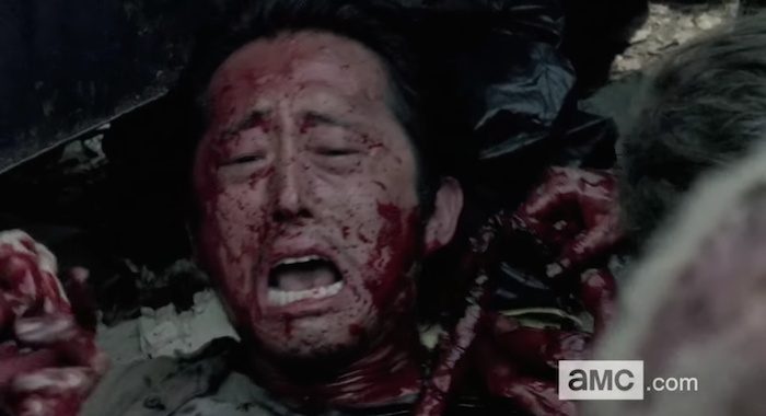 On a show where anyone but Rick (Andrew Lincoln) could go at any time, The Walking Dead really had to psyche people out when a main character like Glenn (Steven Yeun) was done for. First they made everyone think Glenn died in a walker horde, but then he made it out. Only later, Negan (Jeffrey Dean Morgan) beat him beyond recognition as he called out to Maggie with his last words.