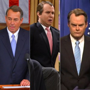 Former Speaker of the House John Boehner; SNL cast members Taran Killam and Bill Hader