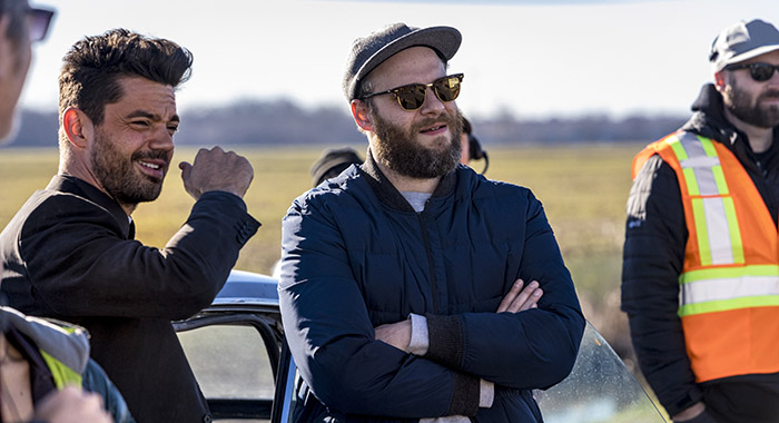 BTS, Executive Producer Seth Rogen, Dominic Cooper as Jesse Custer – Preacher _ Season 2, Episode 1 – Photo Credit: Skip Bolen/AMC