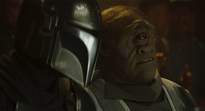 Pedro Pascal and Gor Koresh in The Mandalorian season 2, episode 1