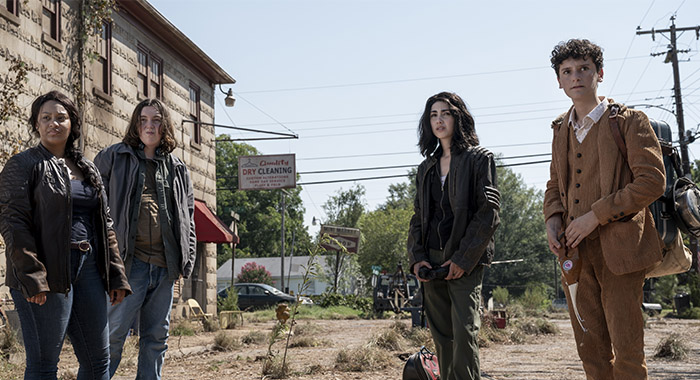 Alexa Mansour as Hope, Aliyah Royale as Iris, Hal Cumpston as Silas, Nicolas Cantu as Elton - The Walking Dead: World Beyond _ Season 1 - Photo Credit: Jojo Whilden/AMC